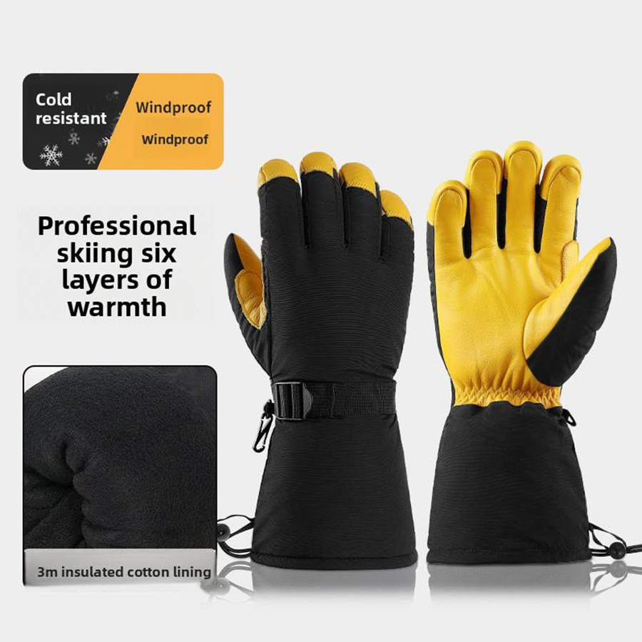 Crafted from premium cowhide leather, these ski gloves combine durability, protection, and comfort, specifically engineered for extreme cold environments and high-intensity skiing. The outer genuine leather layer offers natural waterproof and windproof properties, effectively shielding against snow and cold winds. The interior features high-density insulation material for lasting warmth. The split-finger design enhances grip flexibility, making it easy to hold ski poles, mountaineering gear, or other sports equipment. The zipper closure ensures a secure fit while allowing easy on/off, maintaining protection during movement. The clean, rugged design suits diverse winter activities like skiing, snow trekking, and high-altitude mountaineering, delivering comprehensive warmth and protection for your hands.