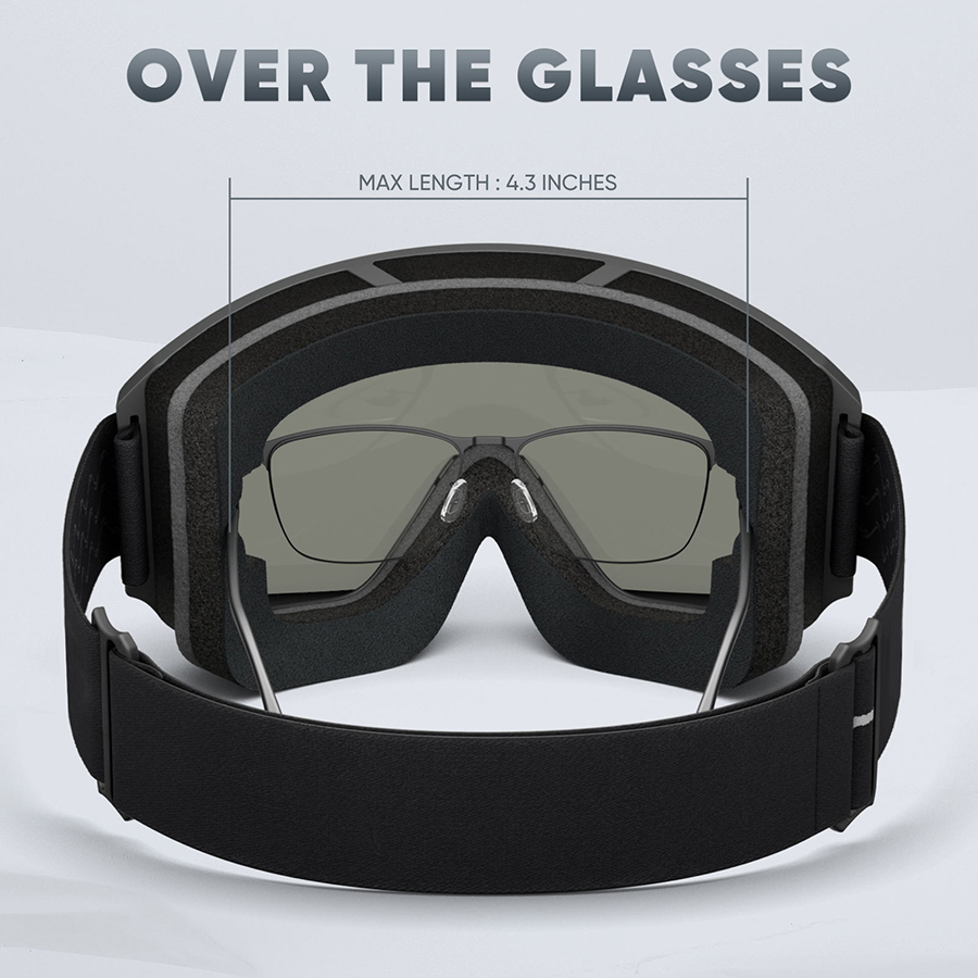 These ski goggles feature photochromic polarized PC lenses that automatically adjust tint intensity based on light conditions, delivering clear and comfortable vision. The lightweight, durable half-frame TPU construction with an adjustable strap ensures a secure fit for all skiing and snow sports. Anti-fog coating maintains lens clarity during high-speed activities…