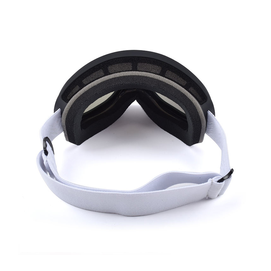 These ski goggles feature a high-strength TPU frame and PC polarized magnetic lenses, specifically designed for skiing and winter outdoor activities. The nose guard design enhances comfort and fit, while high-density EVA foam provides cushioning protection and is compatible with prescription eyewear. The non-slip silicone straps ensure a secure fit, and the magnetic lens system allows for quick lens changes to adapt to varying light conditions.