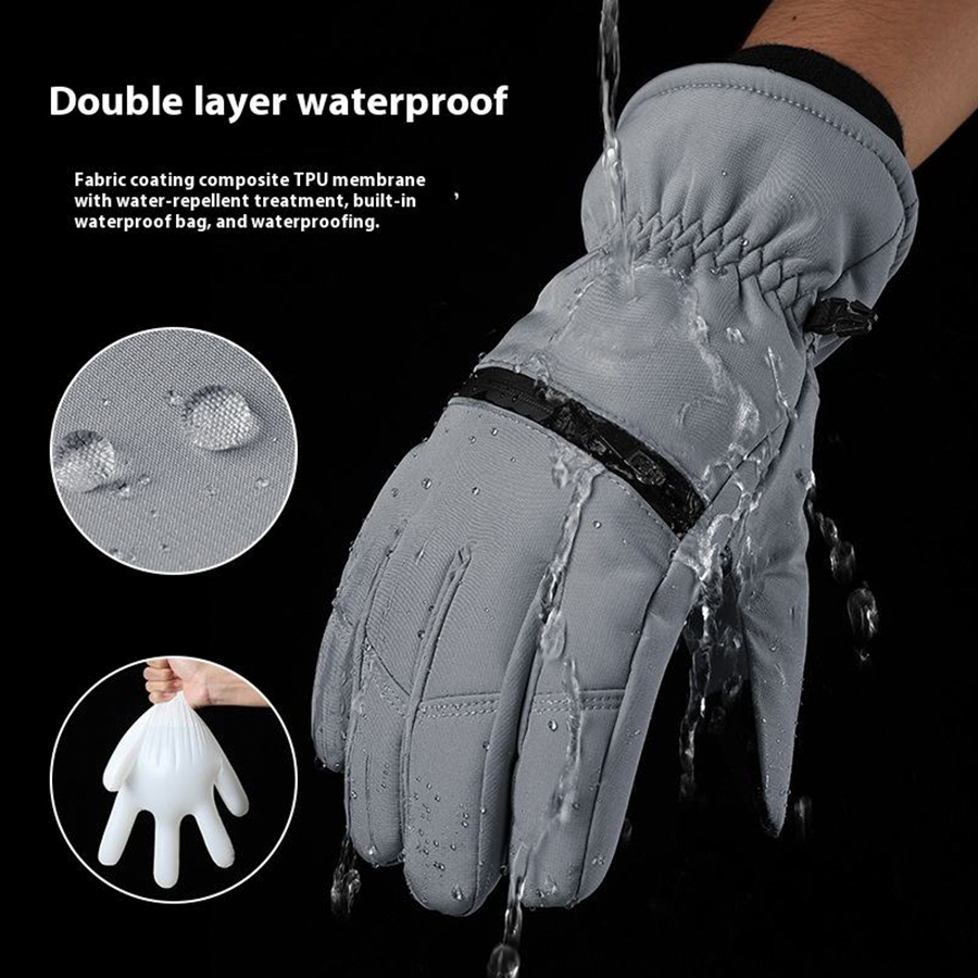 These ski gloves feature a high-density polyester outer shell and soft wool lining, specifically designed for winter skiing, cycling, and various outdoor activities. The outer layer offers excellent waterproof performance, effectively preventing snow and water penetration, while the inner fleece fabric traps heat to keep hands warm for extended periods. The glove design balances flexibility and functionality, with touchscreen-compatible fingertips enabling effortless use of phones or navigation devices in cold conditions. The zipper closure ensures a secure fit while enhancing wind resistance. Whether on the slopes, mountain biking, or exploring frigid wilderness, these gloves deliver reliable protection and comfort for your hands.