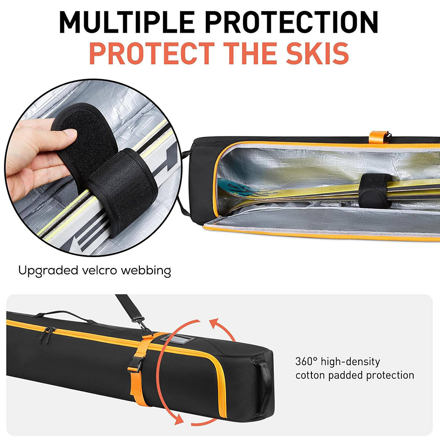 Waterproof & Impact-Resistant: Nylon construction combined with EVA foam lining effectively protects skis and boots.